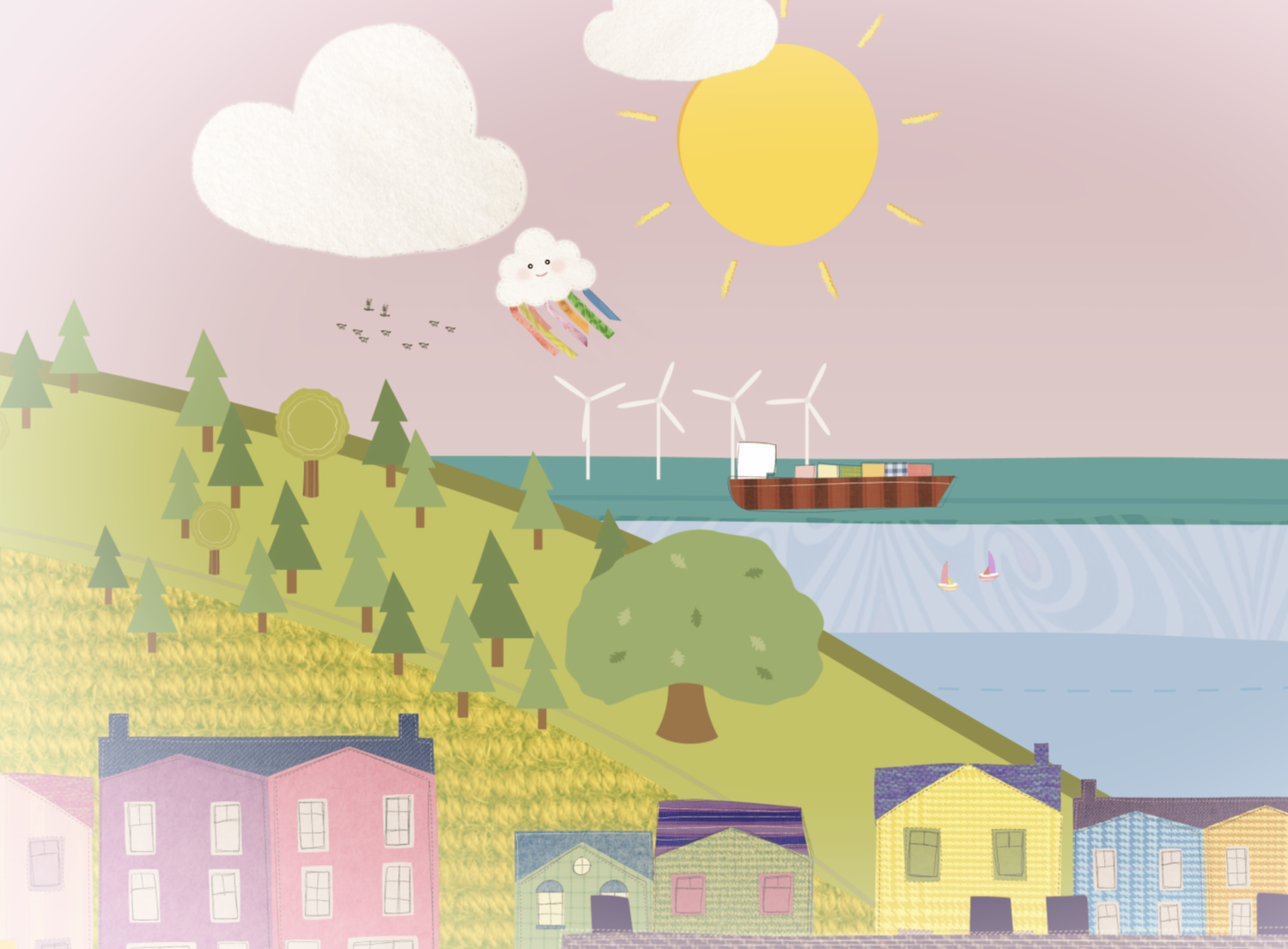 Characters and a fictional world illustrated for children’s programme Shwshaswyn, broadcast on S4C.